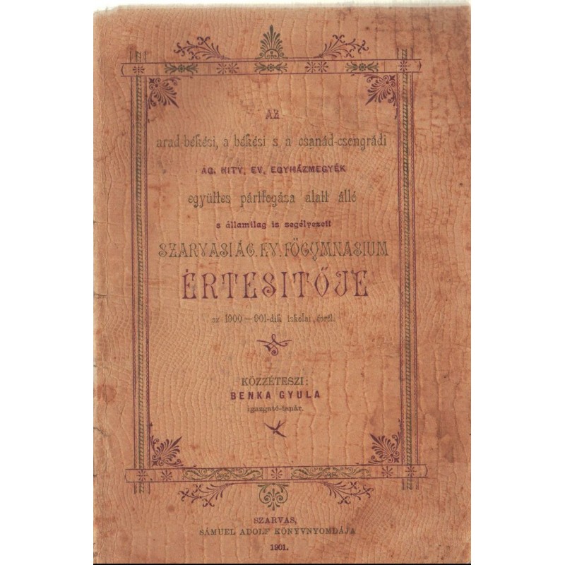 Szarvasi Ág. Ev. Főgymnasium értesítőja az 1900-901-dik iskolai évről