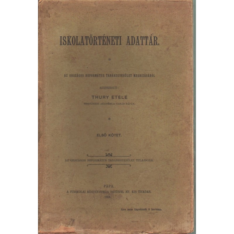 Iskolatörténeti adattár I. kötet