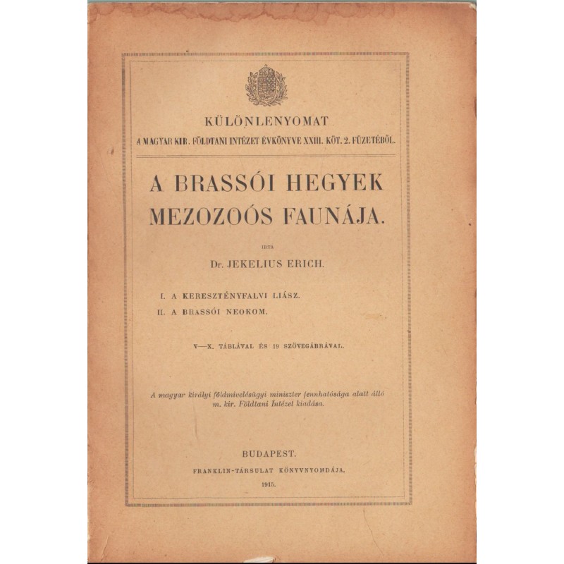 I. A keresztényfalvi liász II. A barrói neokom III-VII. A brassói dogger- és malmfauna V-X. táblával és 19 szövegábrával (1. kötet) IV-VI. táblával és 23 szövegközti ábrával (2. kötet)
