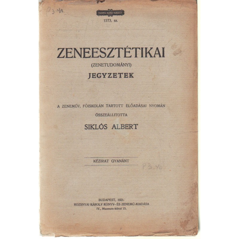 | Kiadó(k) | Rozsnyai Károly Könyv- és Zeneműkiadása |