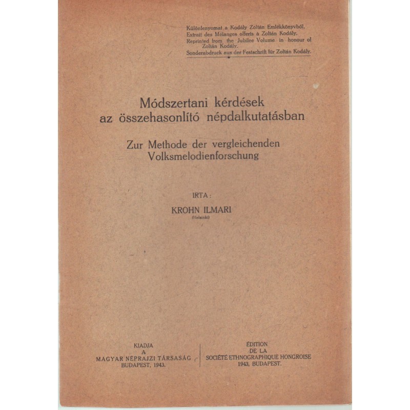 Módszertani kérdések az összehasonlító népdalkutatásban / Zur Methode der vergleichenden Volksmelodienforschung